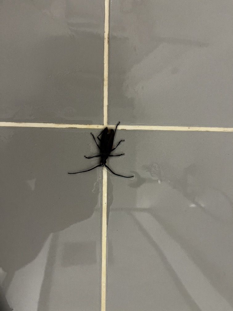 Oh da fällt mir ein, dass wir das hier nie aufgeschrieben haben. Wir hatten im Frühjahr schon mal einen "Insekten-Zwischenfall"! Ein ungefähr 4 cm großer schwarzer Käfer krabbelte plötzlich in der Dusche zwischen Wiebkes Füßen und sie hat den erst gesehen, als sie nach dem Haarewaschen die Augen wieder aufgemacht hat! Was für ein Geschrei! Einfach barfuss plattgetreten hat sie den! Killer! Aber da wollte ich gar nicht drauf hinaus.