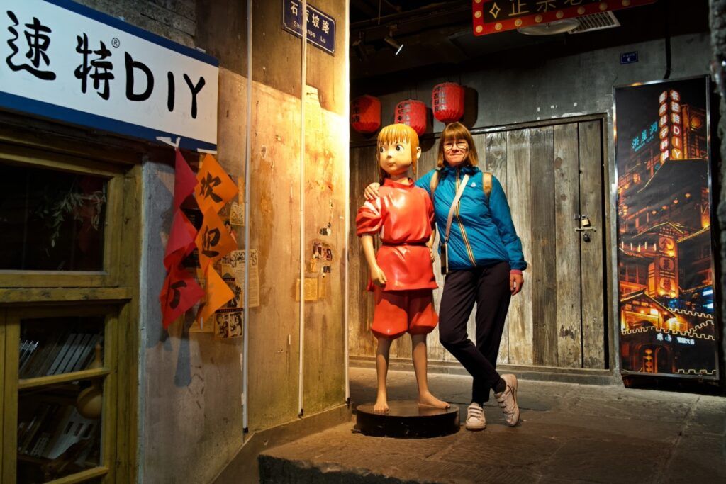 Heute am Nachmittag geht es zurück. Wir haben schon alle unsere geplanten Spots angeschaut und beschließen, nach dem Frühstück einfach so durch die Stadt zu schlendern. Zuerst geht’s zum Grand Theatre auf der anderen Seite des Flusses. Unten am Ufer bzw. im Flussbett haben wir eine nette Unterhaltung mit einem Typen, der uns einfach aus Interesse anspricht, nachdem er schon seit 5 Minuten zu uns rübergeschielt hat. Man merkt hier unten, wie leer der Fluss zur Zeit ist und wie hoch die Brücken tatsächlich sind. Zum Mittag gibt es nochmal Nudeln in einem winzigen Laden, den man durch‘s Treppenhaus eines Wohnblocks betreten muss. Durch‘s Fenster wird auch außer Haus verkauft. Dann noch ein bisschen chillen im Park und später am Flughafen gibt‘s noch eine Runde Massagesessel! Chongqing war super- für viele (junge) Chinesen zur Zeit „the coolest city in China“!