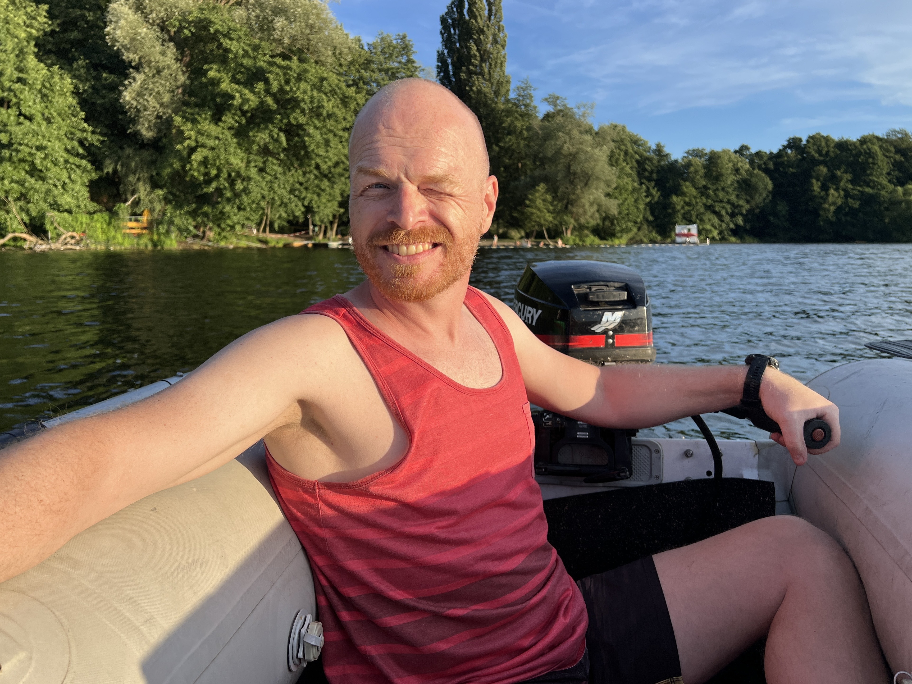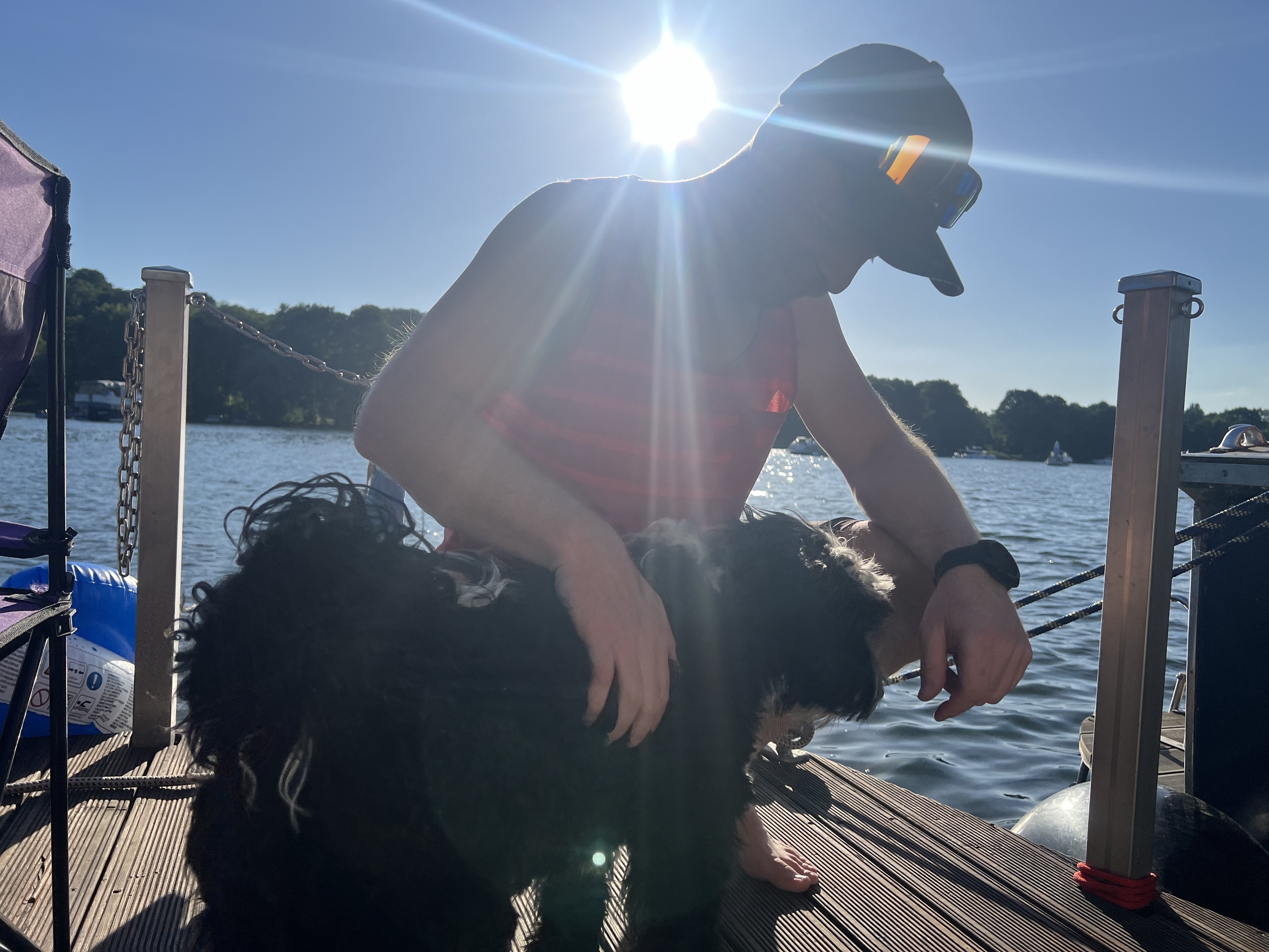 Auch das schönste Wochenende ist mal um und wir verbringen ein paar Tage in Hamburg, bevor wir zur nächsten Station nach Werder an der Havel fahren, wo wir das Hausboot beziehen wollen. Unsere Anreise findet allerdings getrennt statt, weil ich noch einen extra Tag in Hamburg bleibe (❤️‍🩹). Ich fahre mit dem Zug nach und springe an Tag zwei der Bootsfahrt quasi im Vorbeifahren auf – muss dann wegen akuter Havariegefahr sofort das Ruder übernehmen, um den Tag zu retten. So liebe ich das 💪🏻. Bemerkenswert sind die unfreundlichen Anwohnern an der Havel. Ich schaffe es nicht die 500 Meter vom Bahnhof zum Wasser, ohne von zwei älteren Herren angekackt zu werden: alles Privatgrund hier, zieh Leine! 🤷🏼‍♂️