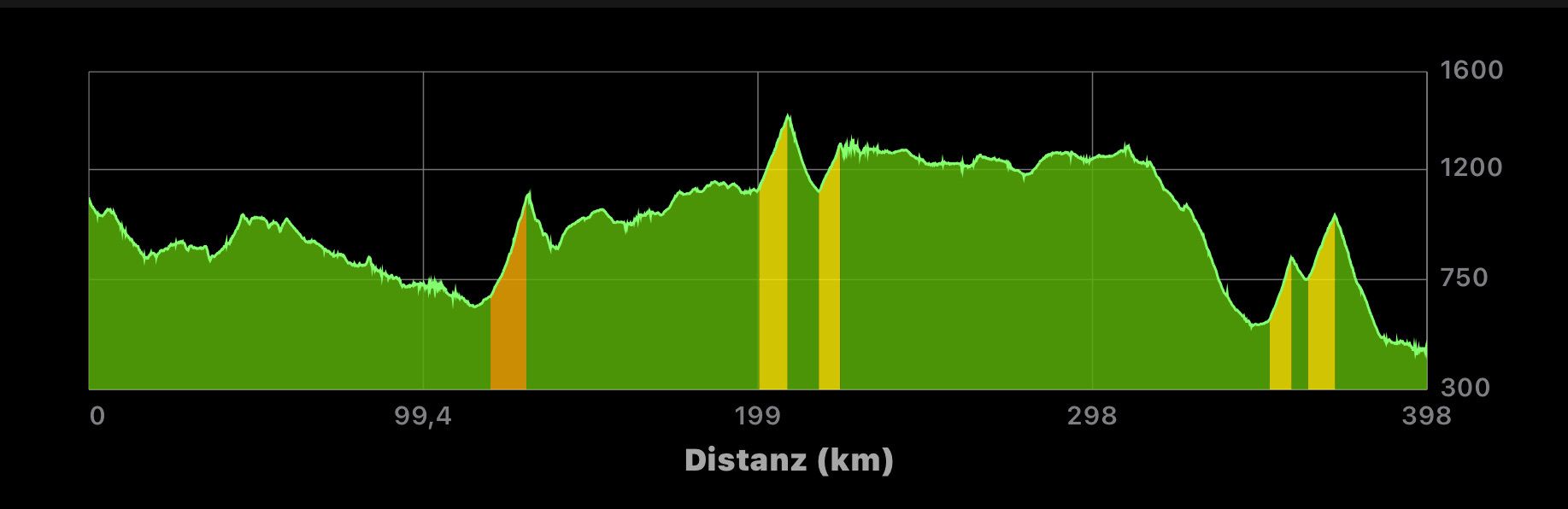 Strecke | 398 km (blau) | 411 km (gelb) |