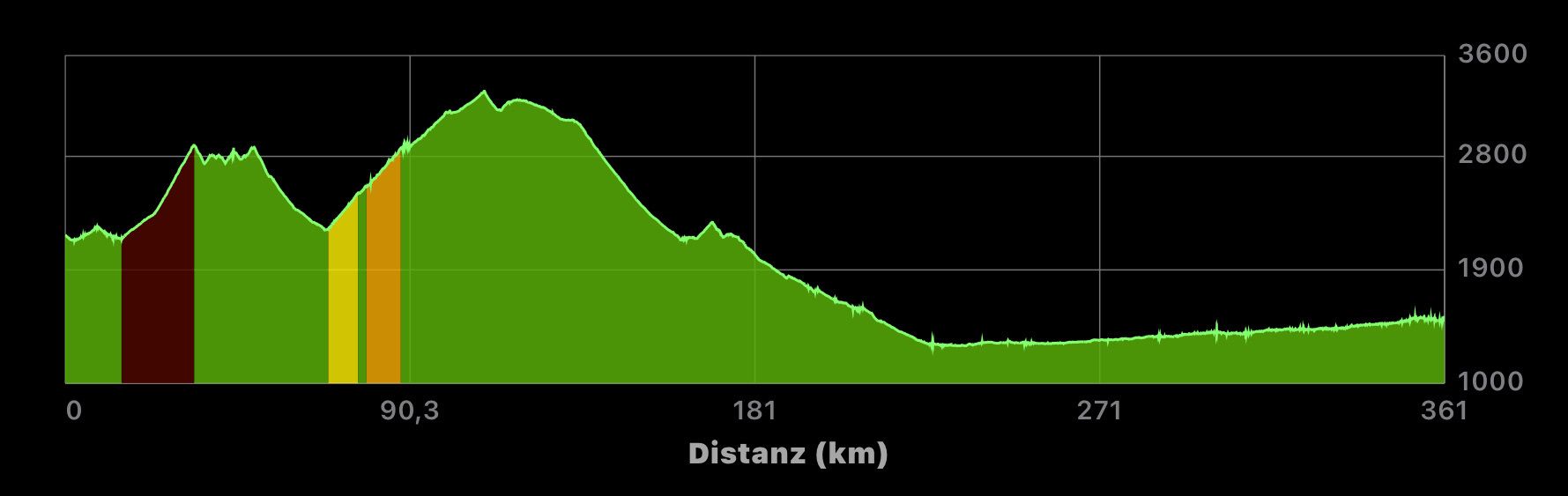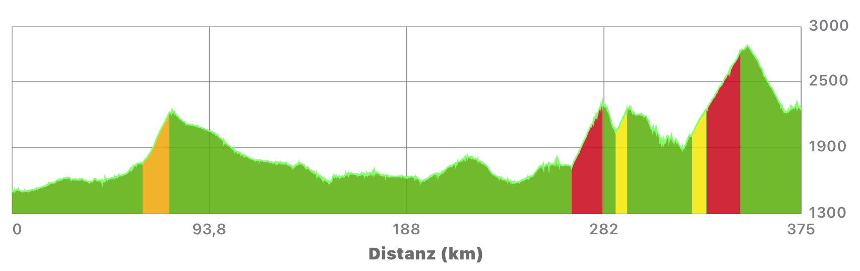 Strecke | 162 km (blau) | 361 km (gelb) | 375 km (grün) |