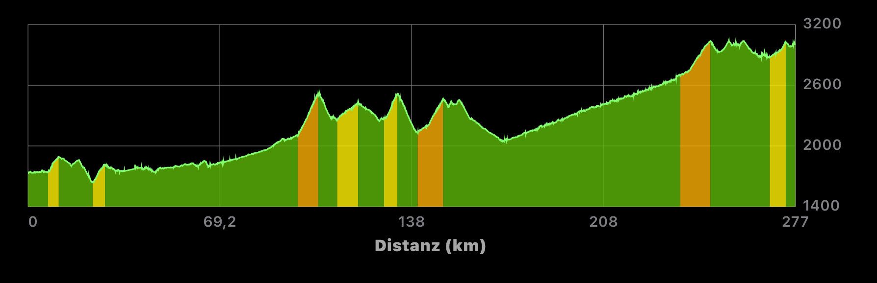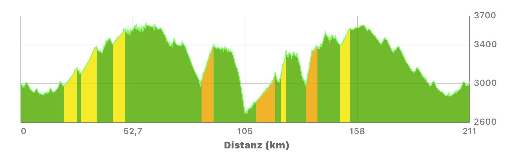Strecke | 168 km (blau) | 329 km (gelb) | 211 km (grün) |