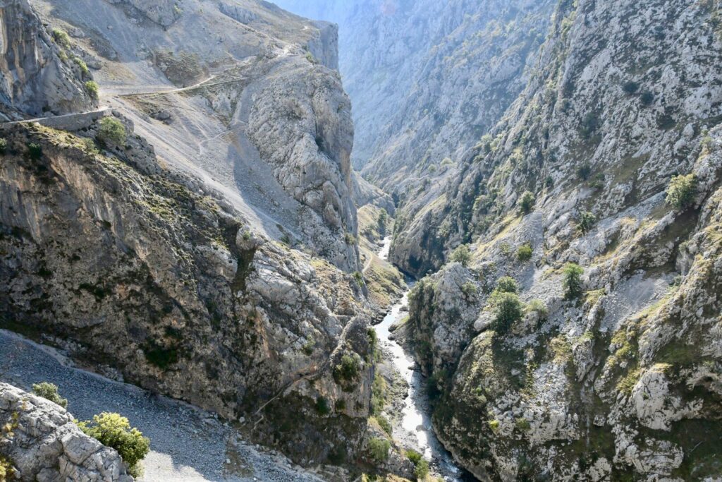Wir verlassen heute die Picos de Europa und werden dieses Gebirge in guter Erinnerung behalten. Die Wanderungen am Berg und die Fahrten auf den verschlungenen Bergstraßen haben sehr viel Spaß gemacht. Wie immer haben wir auf dem Weg zum Ziel einige Pflicht- und einige Kür-Stopps eingeplant. Definitiv müssen wir Wasser auffüllen und Tanken. In den Bergen ist es immer wieder der Fall, dass die Treibstoff- und Reichweitenanzeigen plötzlich wegen des höheren Verbrauchs „in sich zusammenbrechen“. Komisch eigentlich, dass ich davon immer wieder überrascht werde. Für ’nen Euro war auch noch ein alter Kärcher Hochdruckreiniger aufgebaut. In der Hoffnung auf ein kleines Trinkgeld habe ich die Karre grob „abgekärchert“. Zwei Cent, sage ich nur. Komisch eigentlich, dass ich davon immer wieder überrascht werde… 🙃 Am Mirador del Fitu können wir noch einmal zurück auf die Picos schauen und schießen später auf einem Parkplatz einige Glamour-Shots einer dort wiederkäuend dösenden Kuh. Vorsicht ist geboten, denn der Parkplatz ist voll mit Kuhscheiße-Tretminen.