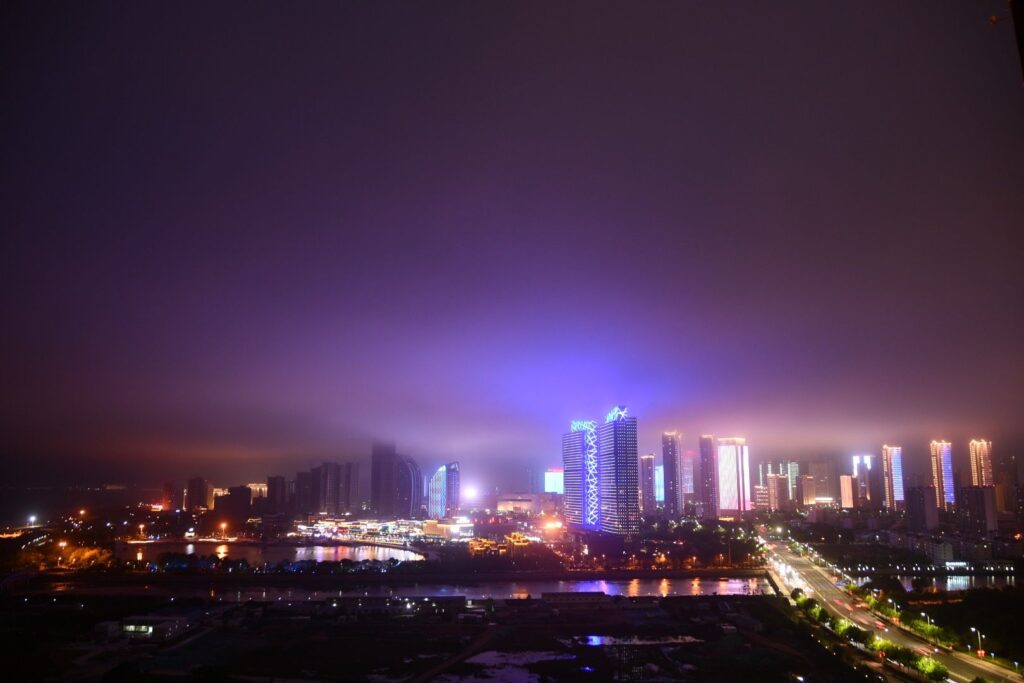 Als wir am Abend an der Rezeption nach einer Bar fragen, werden wir auf „28 o’clock“ verwiesen -den 28ˋsten Stock. Gut zu wissen, dass nicht nur wir mal zum falschen chinesischen Wort greifen 😉. Dort oben befindet sich allerdings nur die Executive Lounge. Also ein gesonderter Bereich für „besondere“ Gäste. Getreu dem Motto: „uns gehört das hier“ gehen wir rein, bestellen zwei Getränke und setzen uns an die großen Fenster, um das Spektakel zu betrachten: ALLE wirklich großen Hochhäuser sind außen mit LEDs versehen und leuchten den frühen Abend über koordiniert. So segeln mal kleine Schiffchen über die Fassaden oder es regnet Herzen in die Stadt. Einfach krass & schön!! Zwischendurch fliegt unser Coup auf und wir werden freundlich darauf hingewiesen, dass wir keinen „Executive Status“ haben und die Getränke bezahlen müssten. Heute gäbe es die Drinks aber noch als Geschenk 😬. Stumpf ist Trumpf.