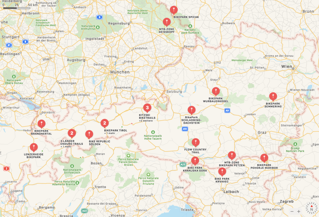 Diese BikeParks sind in der Saisonkarte inkludiert.