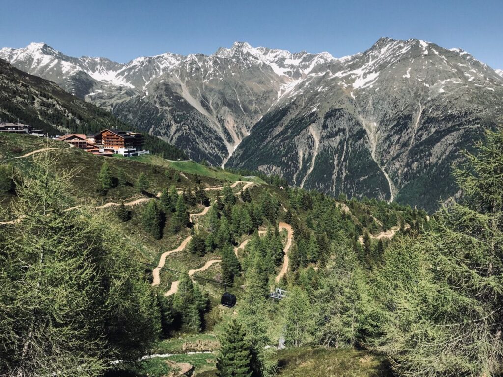 Da ich noch ein paar Tage in der Region bleibe und das Fahrrad auf dem Bus habe, bin ich nach Sölden. Sölden ist eine der Alpenregionen, die im Sommer auf Wanderer und Mountainbiker eingestellt ist. Man hat hier die sogenannte Bike Republic Sölden ins Leben gerufen, um Mountainbikern alles rund ums Hobby bieten zu können. Gefahren bin ich insgesamt 50 km mit dem Rad, davon 30 km auf wunderbar neugebauten (der Sommerbetrieb ist erst am Freitag, den 11. Juni gestartet) Trails bergab – 2.700 Meter in die Tiefe. Ich bin völlig kaputt gespielt … 🤪.