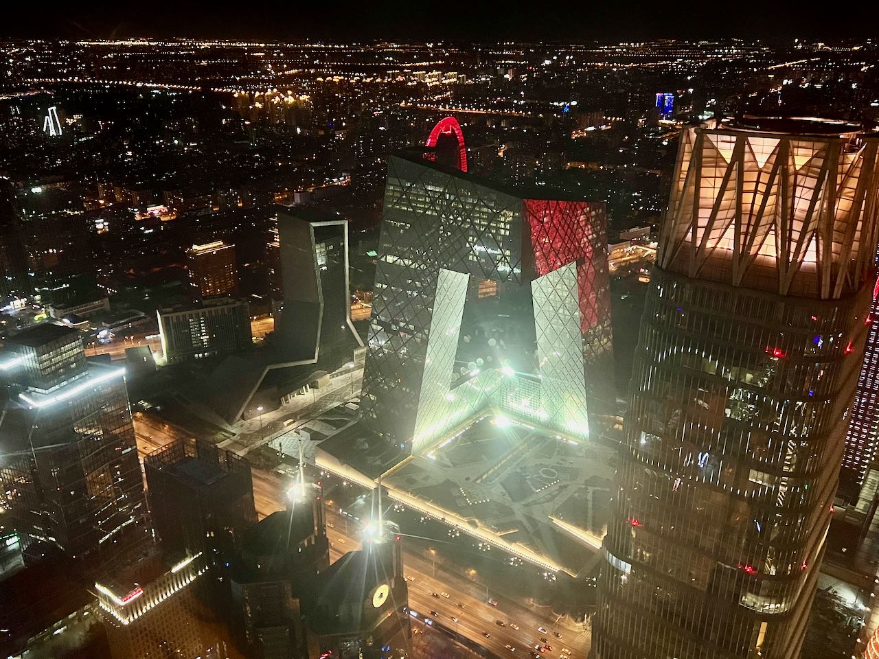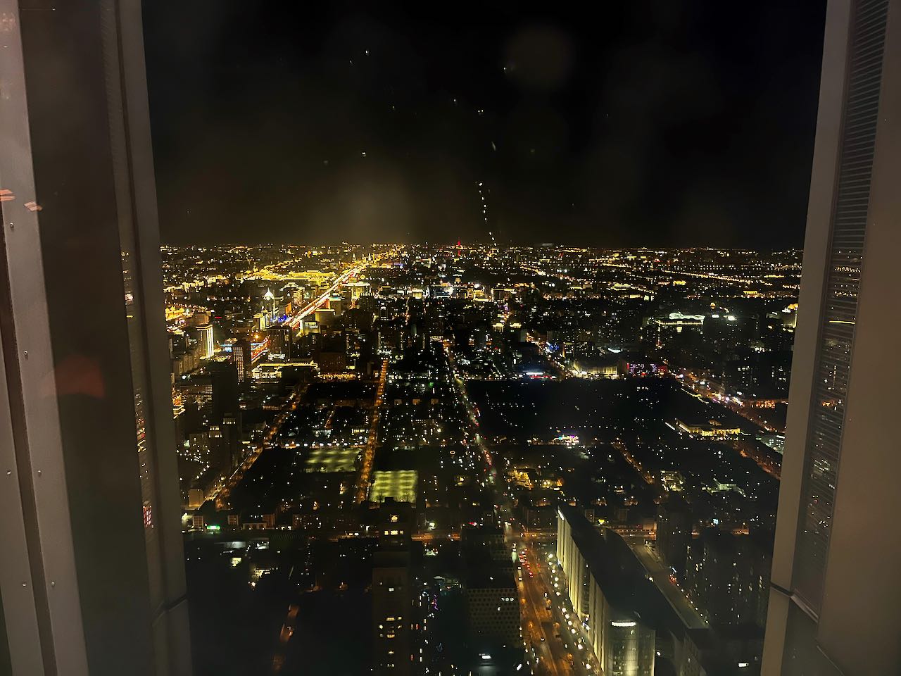 Rooftops & Bars mit Aussicht & Pizza Zwei bemerkenswerte Dächer haben wir im dieser Zeit besucht. Erste Station: Wohnungseinweihung bei leckerer Pizza. Dieses Dach ist aus gleich zwei Gründen enorm cool. Erstens steht im Dach-Wintergarten ein voll ausgestattetes Fitnessstudio, das der Vermieter "nicht mehr wollte" und zweitens hatte ich bislang noch keinen so atemberaubenden Ausblick auf die City-Skyline! Zweite Station: Rooftop-Bar. Die Bar ist dann doch nicht ganz auf dem Dach, muss ich fairerweise zugeben. Dafür aber im 81sten Stockwerk. Also ausreichend hoch, um als "auf dem Dach" zu gelten und mit einer spektakulären Rundumsicht über ganz Peking. Spektakuläre Getränkepreise gab es ohne extra Bestellung dazu.