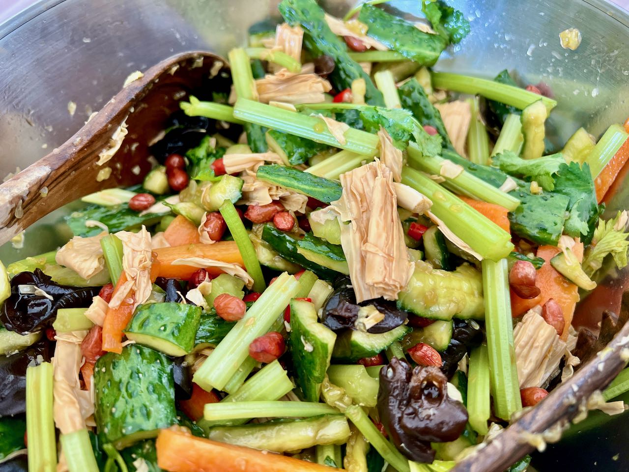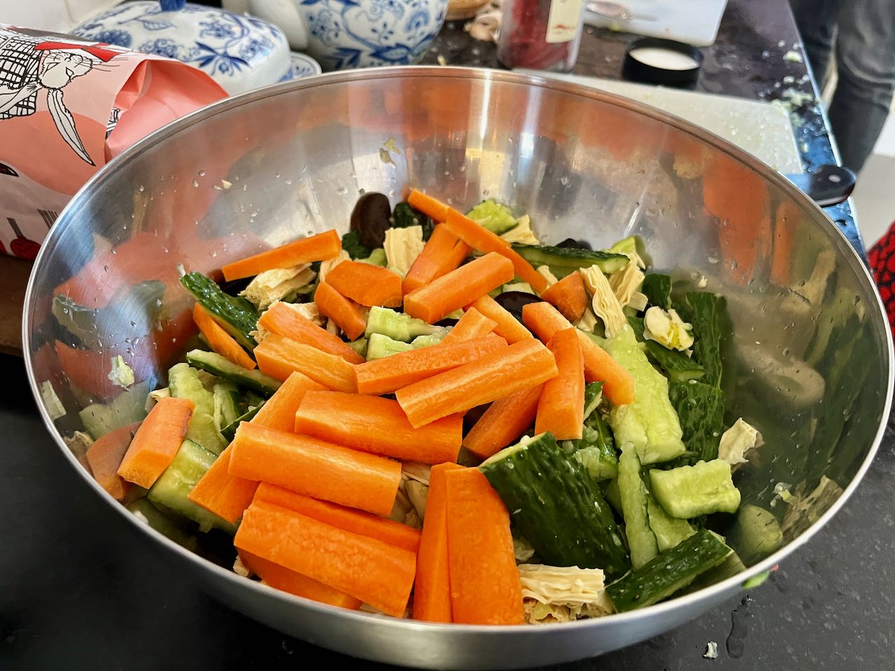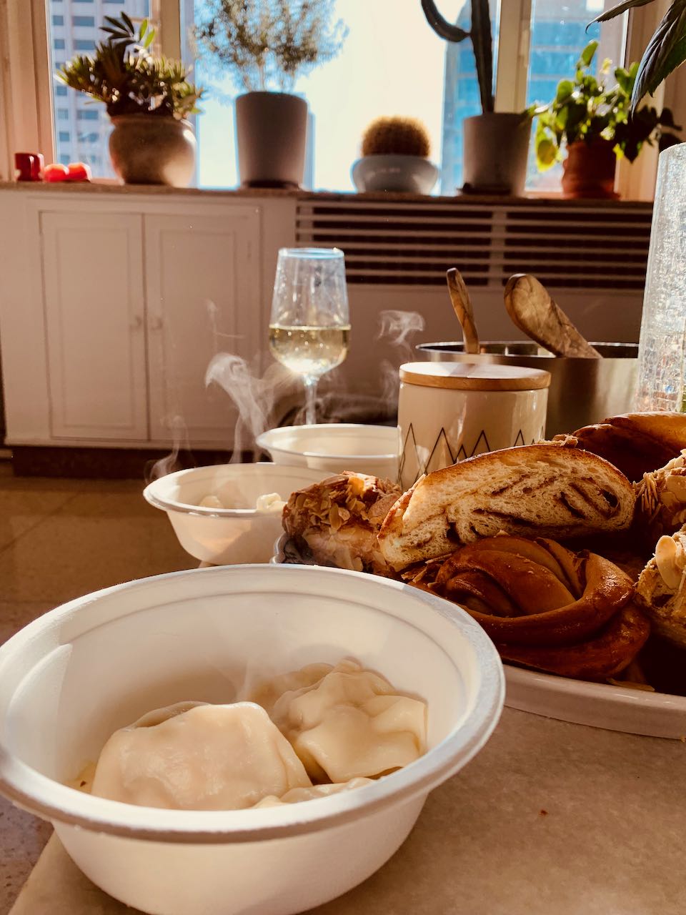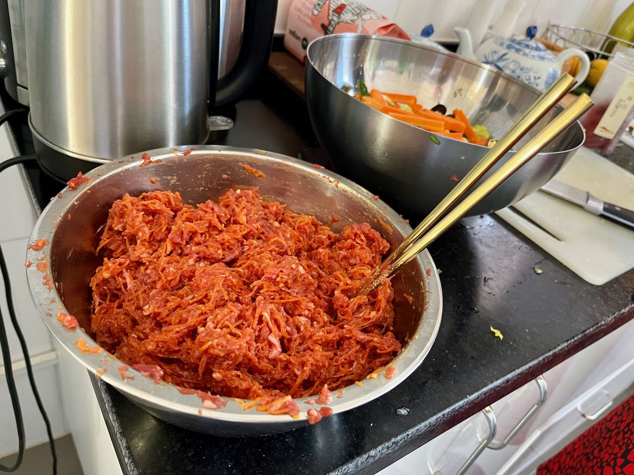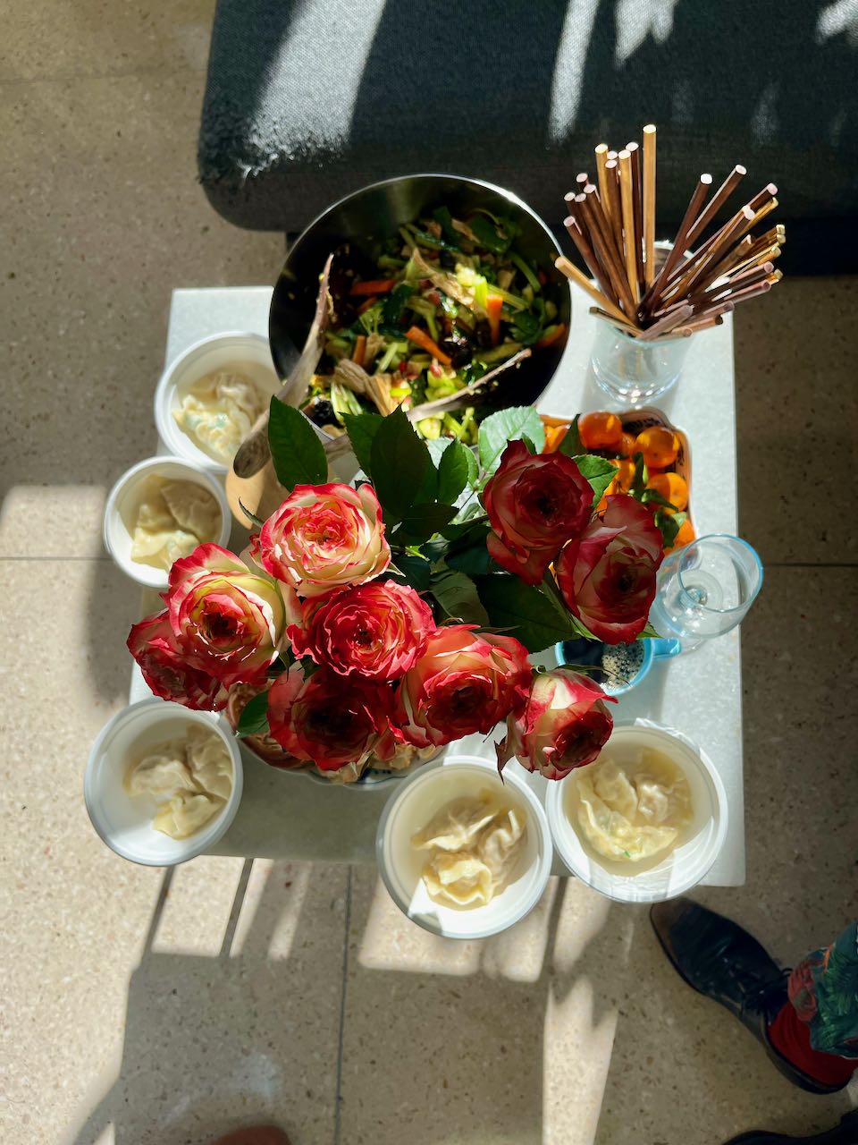 Hin und wieder wird in geselliger Runde gekocht, geklönt und dabei auch ein büschn Sekt getrunken. Freunde hatten für Sonntag zum „Knödel machen“ eingeladen. Der Teig wurde fertig gekauft, den Salat und die Füllungen haben wir alle gemeinsam zubereitet. Diese chinesischen Knödel heissen Jiaozi (饺子). Es gibt noch diverse andere Varianten und Formen, je nach Anlass und Tageszeit: rund oder fluffig, süß oder sauer, zum Mittag für zwischendurch oder zum Frühstück. Im Grunde sind das alles grob Jiaozi (饺子) oder Baozi (包子). Auf die Details kommt es an. Wir sind große Fans!!